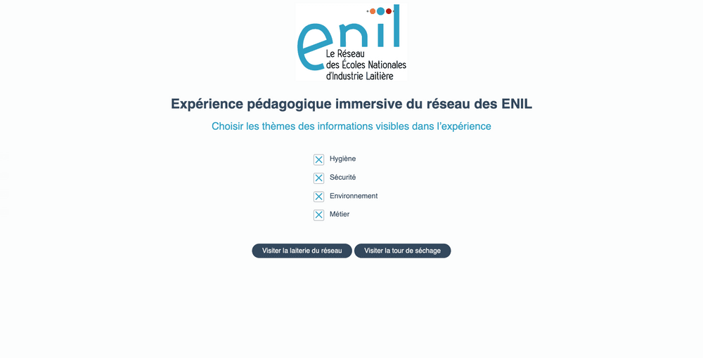 Les Ecoles Nationales d’Industries Laitières (ENIL) de : Aurillac, La Roche Sur Foron, Mamirolle, Poligny, Saint-Lô et Surgères proposent une offre de formation à destination des publics lycéens, étudiants, apprentis, adultes (salariés et demandeurs d’emploi). Il provient d’une volonté du réseau des ENIL de développer des outils pédagogiques innovants permettant l’immersion des apprenants en situation professionnelle afin de les sensibiliser à la prise de décisions et à la résolution de problématiques en contexte professionnel.